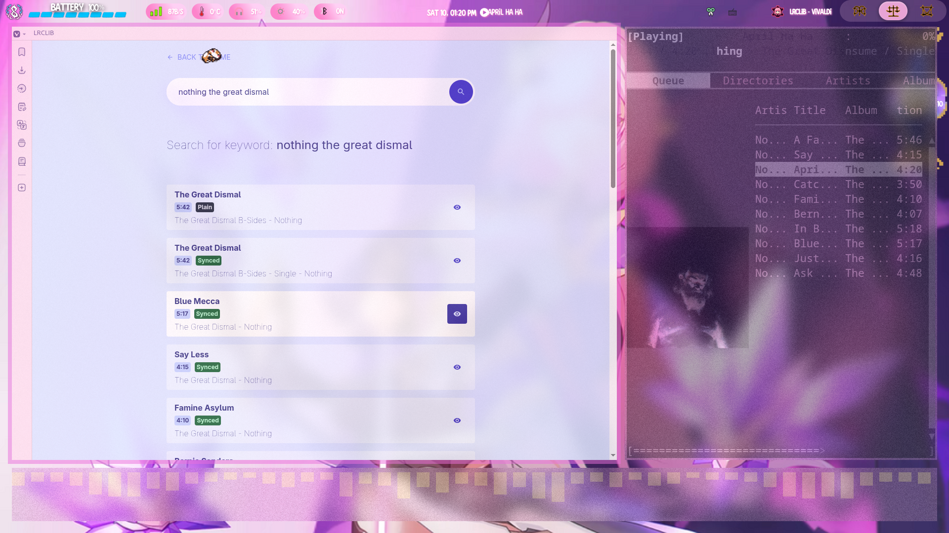• If you don't have a copy of the artwork on your computer, download it from a music DB site. My choice is RYM as it has very high quality images, Genius lyrics is a very good source for collaborators on a song if that's what you are looking for, but literally just any search engine would work.