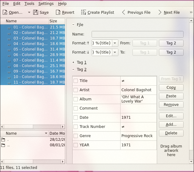 Most of the time, unless you are using wav, Your music will have metadata already supplied. But what if it doesn't? Well if you are a mac user you're in luck bc Apple's auto metadata tool for disc ripping is insanely good and uses the same DB as car stereos do to identify your CD but with more user control. But if you aren't ripping a CD on Mac and your files don't have metadata, you may need to do it manually. There are tons of great tools for this. On MS Windows and Mac there's MusicBrainz Mp3tag which pulls from MusicBrainz online database. Alternatively, and my choice, is KDE Kid3 which works on GNU Linux, MS Windows, Mac, Theo De Raadt OpenBSD (according to wikipedia but I can't find this mentioned on the KDE website), & Google Android. Kid3 also allows access to MusicBrainz DB along with a few other DBs. Kid3 Is defo the better choice due to it pulling from more sources but it's designed for Linux first, KDE DE in particular, so can look out of place compared to your other apps on Windows and Mac, as well as non KDE DE's on linux. Personally I find myself using metadata editors to embed artwork manually as this seems to be where the auto tag struggles the most. I'll give a quick demo how to do that below.